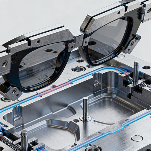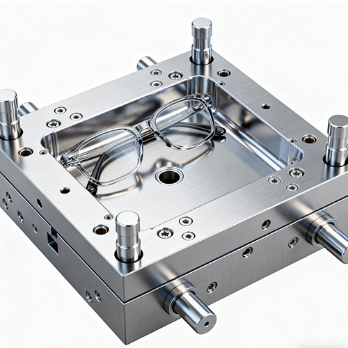 Injection Mold For Eyewear Frames viittaa räätälöityyn muottiin, joka on erityisesti suunniteltu muovisten silmälasikehysten (osien, kuten linssin vanteiden, sankojen ja nenätyynyn kiinnikkeiden) valmistukseen ruiskuvaluprosessin kautta. Sen ydintoiminto on ruiskuttaa muottiin sulaa silmälasikehyskohtaista muovia, kuten TR90:tä, PC:tä ja ABS:ää tarkkuusonteloiden ja porttijärjestelmien kautta, jolloin muodostuu silmälasikehyksen komponentteja, jotka täyttävät ergonomian ja korkean mittatarkkuuden (toleranssi ±0,02 mm). Verrattuna perinteisiin metallisiin silmälasikehysmuotteihin (monimutkainen käsittely ja korkeat kustannukset), silmälasikehysten ruiskumuotit voivat toteuttaa monimutkaisten kaarevien pintojen (kuten linssin reunan kaarevuuden ja temppelin taivutuskäyrän) ja funktionaalisten rakenteiden (kuten saranoiden kiinnitysreiät ja nenätyynyn korttipaikat) integroidun muovaamisen korkealla tuotantotehokkuudella (moni-ontelo-2-5, yksi-1-kammio-5 tuotantojakso). Sitä käytetään laajalti muovisten silmälasien kehysten, kuten myopialasien, aurinkolasien ja urheilulasien, massatuotannossa.