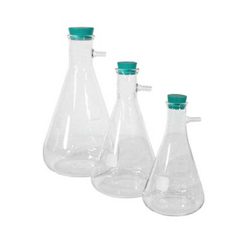 3.Side-Arm-muovinen suodatinpullot: Pullot, joissa on sivuvarsi letkun kiinnittämistä tai tyhjiöliitäntää varten.