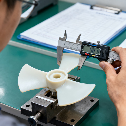 Rakennesuunnittelu: Piirrä 3D-malli CAD-ohjelmistolla keskittyen tuulettimen siiven profiilikäyrän, verkkokehyksen silmäkoon ja pohjan vastapainoalueen paksuuden suunnitteluun; Merkitse tärkeimmät mittatoleranssit;