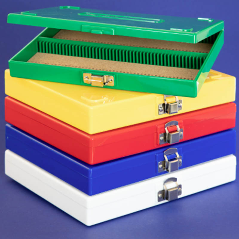 7. Lypsän postituslaatikot: Liukurasiat, joissa on postitusominaisuudet diojen lähettämiseksi muihin laboratorioihin tai tiloihin.