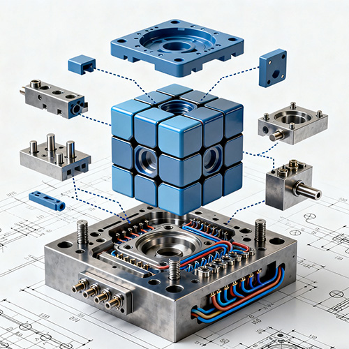 Muotin ontelon suunnittelu: Magic-lohkon muottipesä käyttää peilikiillotusta (Ra ≤ 0,012 μm) lohkon sileän pinnan varmistamiseksi; Moniontelomuotissa on symmetrinen asettelu (kuten 1 muotin ja 12 ontelon pyöreä jakautuminen) varmistaakseen jokaisen ontelon tasaisen täytön (täyttöaikaero ≤ 0,5 sekuntia);