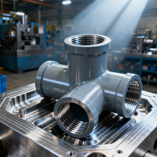 PVC-putkiliitosruiskuvalu tarkoittaa valmistustekniikkaa, joka tuottaa polyvinyylikloridista (PVC) valmistettuja putkiliitostarvikkeita (kuten kulmakappaleita, teeliitoksia, suoria liittimiä, supistussovittimia, venttiilikoteloita jne.) muovisten ruiskuvaluprosessien avulla. Sen ydinominaisuus on putkiliitosten korroosion- ja paineenkestävä muovaus, tiivistetty vuodonkestävä rakenne ja mittojen standardointi PVC-putkien käyttöominaisuuksien mukaan, mukaan lukien nesteen kuljetus (vesi, kemialliset aineet), pitkäaikainen maanalainen tai ulkoinen asennus sekä paineen kantava toiminta. Verrattuna perinteisiin metalliputkiliittimiin (helppo ruostua, painava, korkea asennusvaikeus), PVC-ruiskuvalettujen putkiliitosten etuna on alhainen tiheys, kemiallinen korroosionkestävyys (happo-, alkali-, suolaliuoksia kestävä) ja hallittavissa oleva hinta (raaka-ainekustannukset 50 % alhaisemmat kuin kupariputkiliittimet). Niitä käytetään laajasti rakennusten vesihuollossa ja viemäröinnissä, kunnallisissa putkiverkostoissa, kemikaalien kuljetuksissa, maatalouden kastelussa ja muilla aloilla, ja ne ovat avainkomponenttien valmistusteknologioita tehokkaan liitoksen ja putkijärjestelmien pitkän aikavälin vakaan toiminnan toteuttamiseksi.