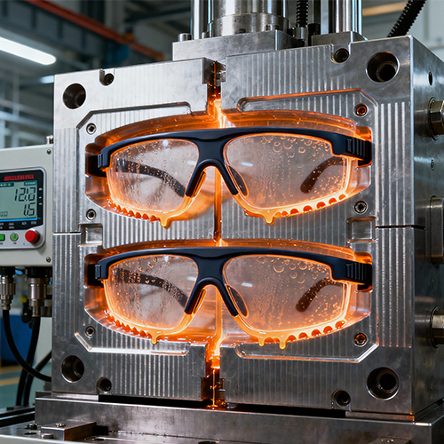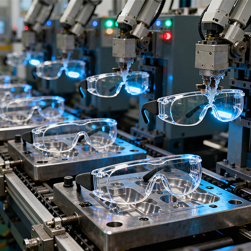 Suojalasien ruiskuvalu tarkoittaa ammattimaisia silmiensuojalaitteita, jotka tuottavat ydinsuojarakenteita, kuten kehyksiä ja linssejä (joissakin tapauksissa linssit ovat yhdistelmävahvistettuja kerroksia ruiskupuristuksen jälkeen) muovisten ruiskupuristusprosessien avulla ja joilla on toimintoja, kuten iskunkestävyys, naarmuuntumisenkestävyys ja UV-suoja. Sen ydinominaisuus on käyttää ruiskuvaluprosessia kehyksen ja linssin integroidun tai tarkan mukautuksen toteuttamiseksi. Rungossa käytetään enimmäkseen iskunkestäviä polymeerimateriaaleja, ja linssi täyttää suojastandardit (kuten ANSI Z87.1, GB 14866 jne.) materiaalin muokkauksen tai pinnoituskäsittelyn ansiosta. Verrattuna perinteisiin lasisuojalaseihin (raskas, särkyvä) tai tavallisiin muovisiin suojalaseihin (heikko suojaus), ruiskuvaletuissa suojalaseissa yhdistyvät kevyt, korkea suoja ja mukavuus. Niitä käytetään laajalti teollisessa tuotannossa, laboratorioissa, ulkourheilussa, rakentamisessa ja muissa skenaarioissa silmien suojaamiseksi vieraiden esineiden iskuilta, kemikaalien roiskeilta, UV-säteilyltä ja muilta vammoilla.